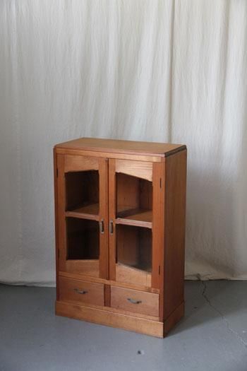 扉や引出しの引手のさりげなさや、面取りされた縁、クリヤのガラスが良く映えとても素敵。