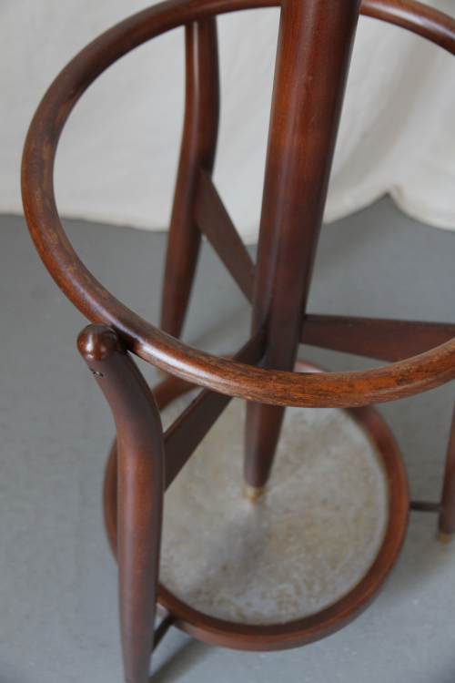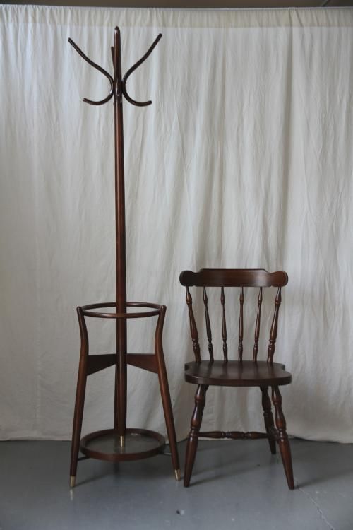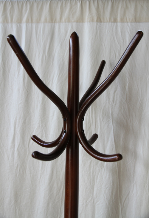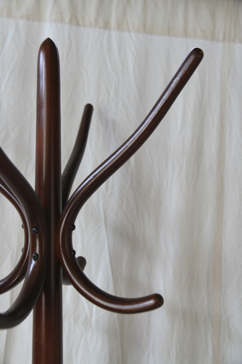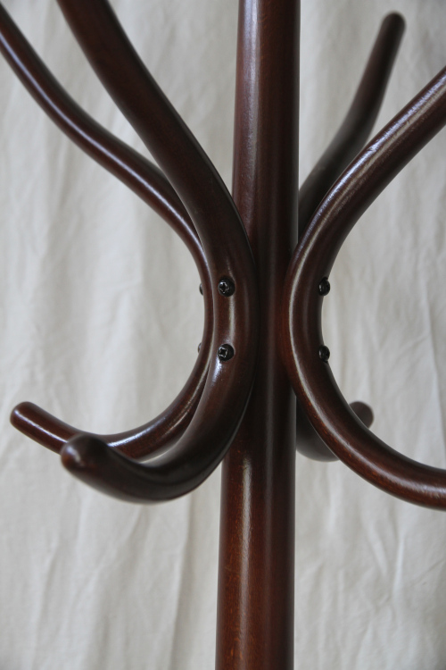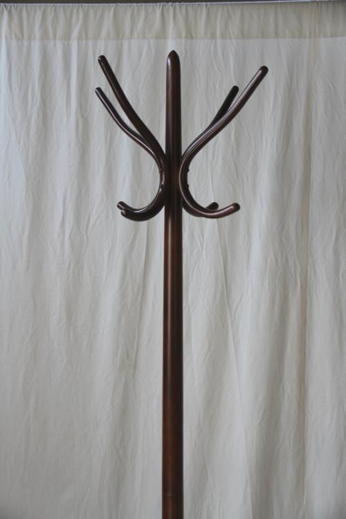 真っ直ぐ伸びたポールに、曲木の柔らかな曲線が印象的。