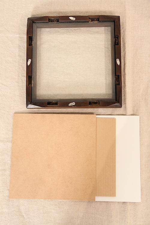 糸巻きの脚の部分をそのまま使用して製作したオリジナルの糸巻きフレーム。