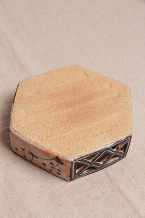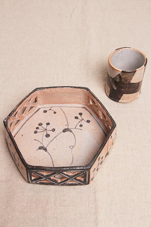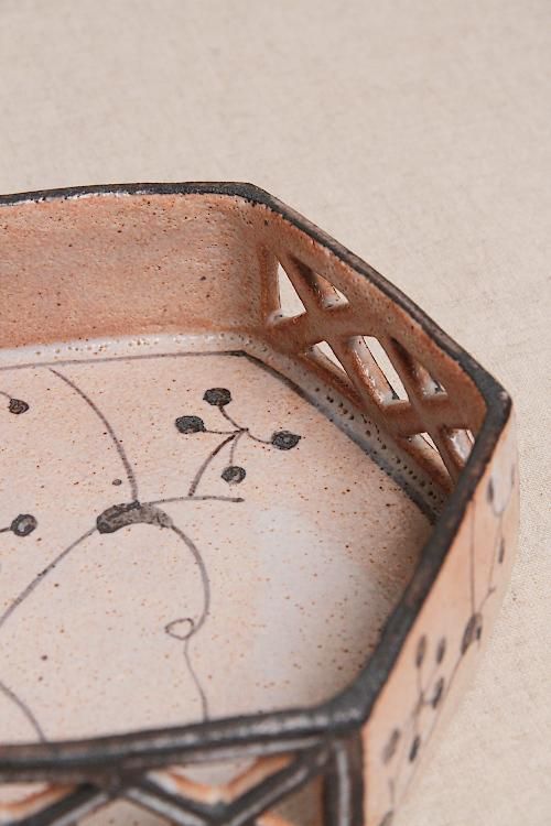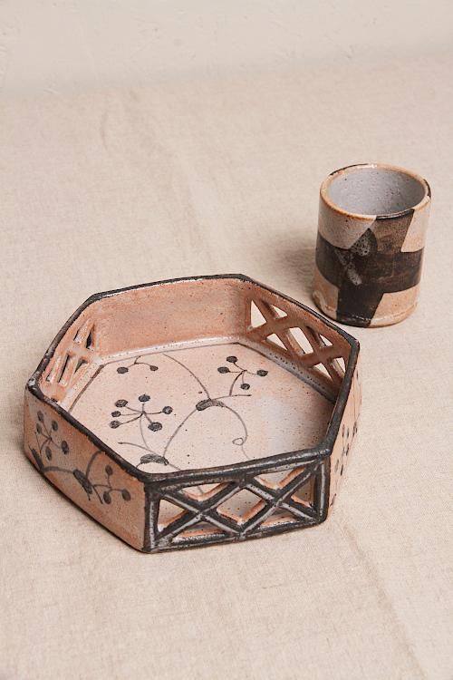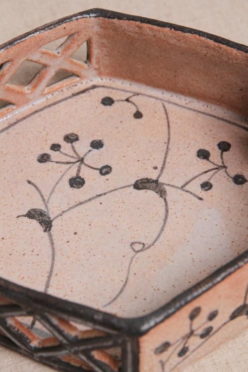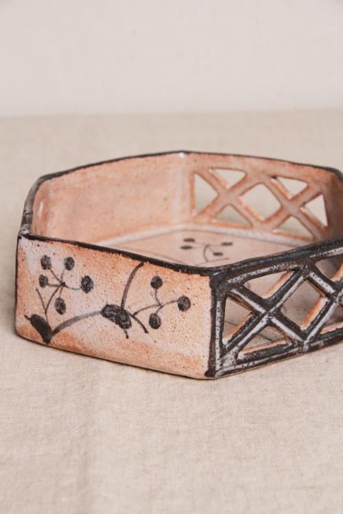 甘利さん独自の黄柿釉とはまた違った印象を受ける白釉薬の六角透鉢。