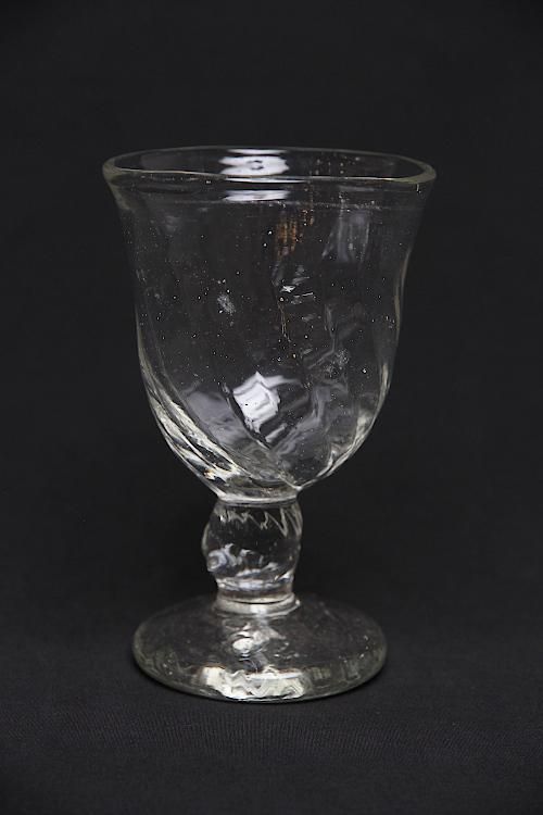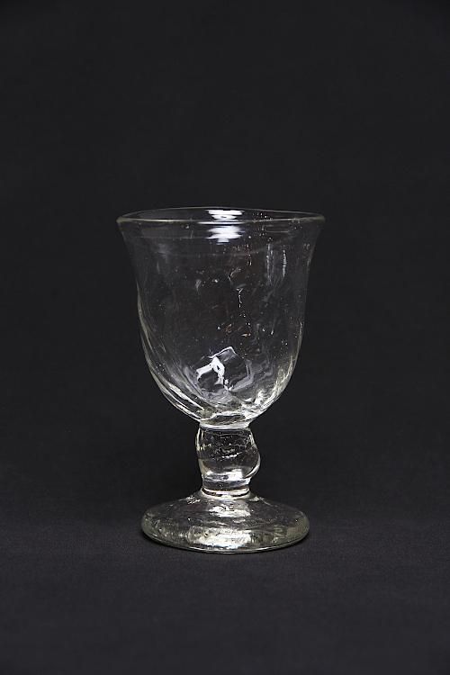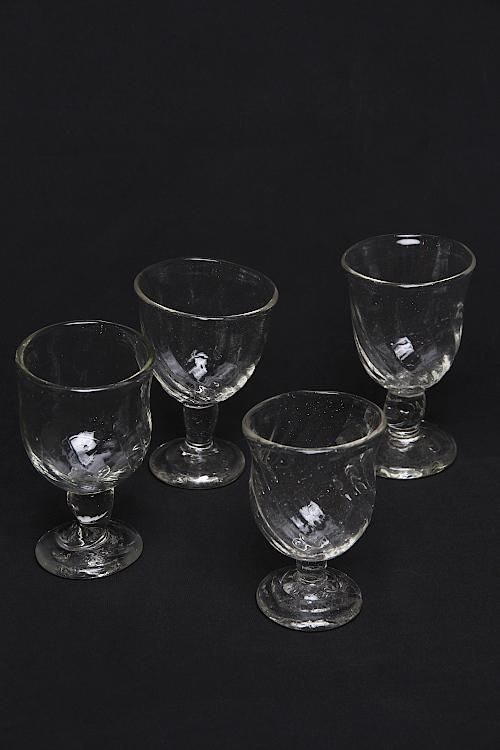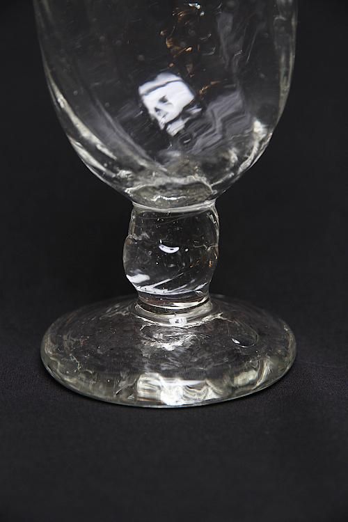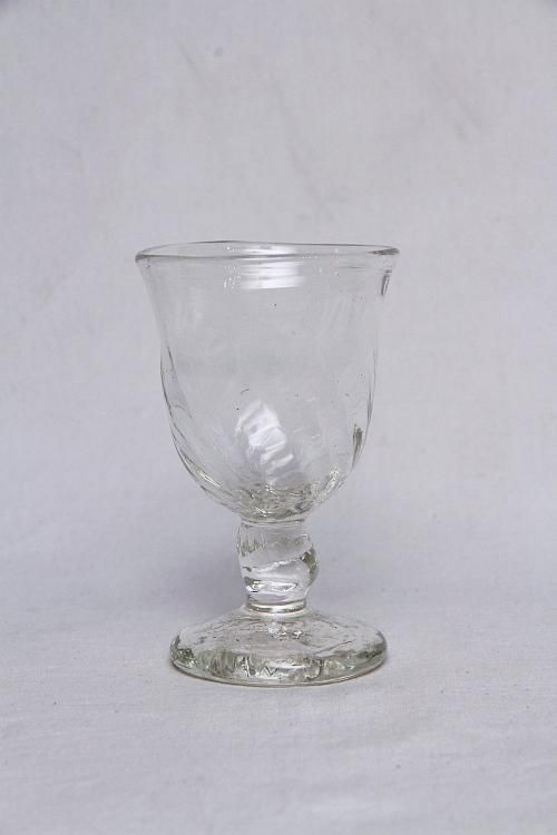 長野市で工房を構える吹きガラス作家、前田一郎さんの脚付きグラスです。