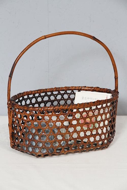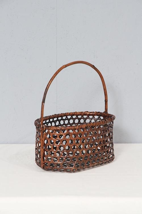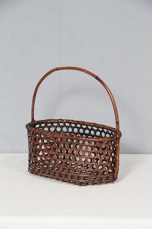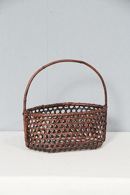 濃いめの色味と程よい艶がきれいな持ち手付きのかごです。