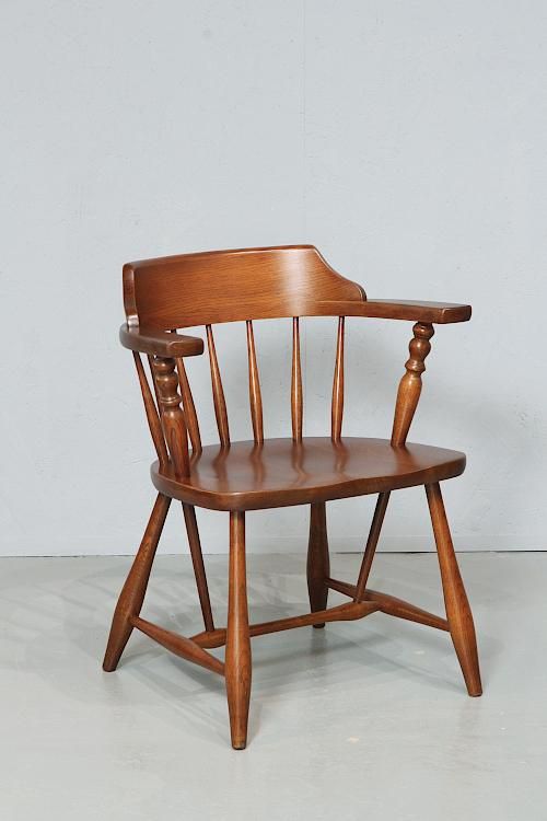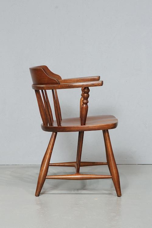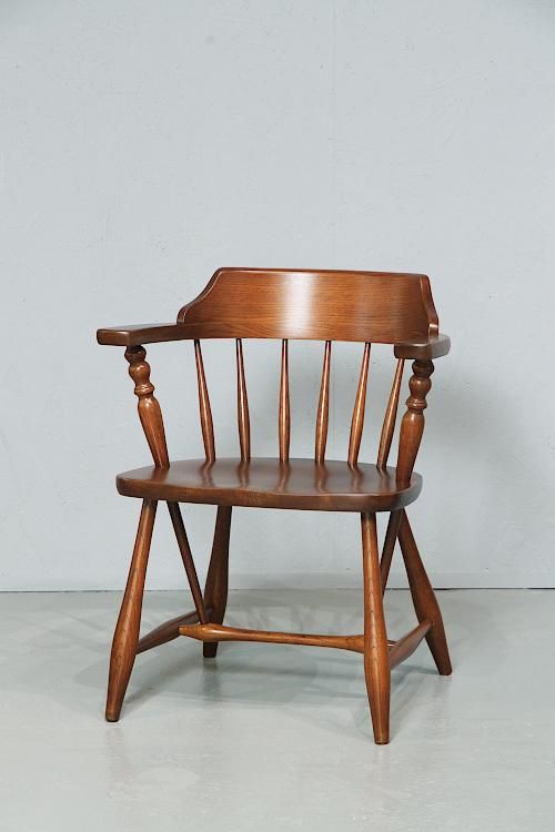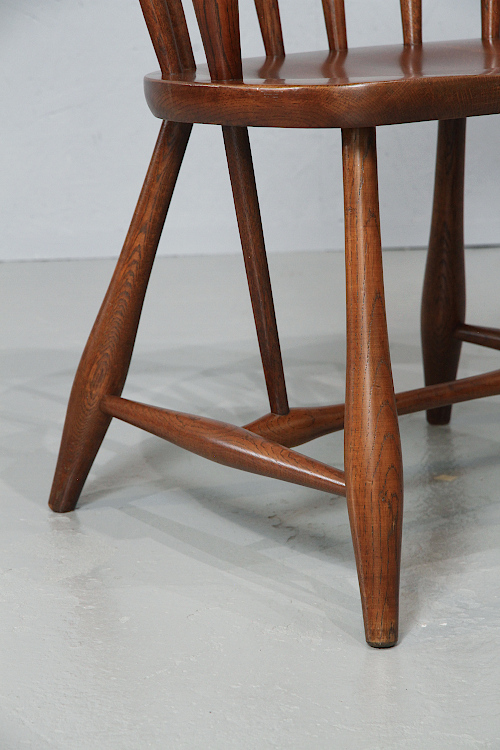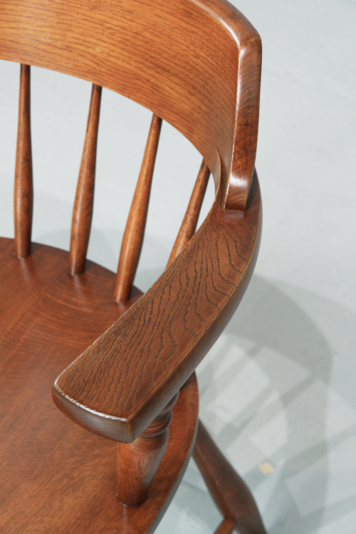 柏木工の肘掛けからストレッチャーに伸びるラインが特徴的なウィンザータイプのアームチェア。