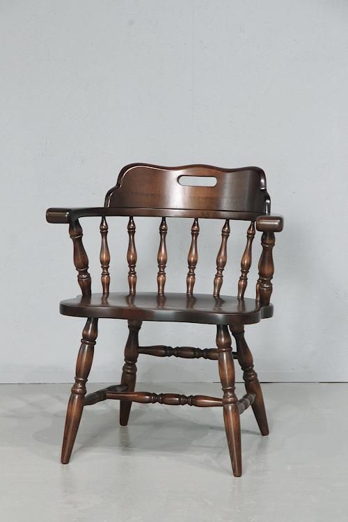 いわゆるキャプテンチェア、スモーカーズボウと呼ばれる形状で、ゆったりと座ることのできるウィンザータイプの椅子です。