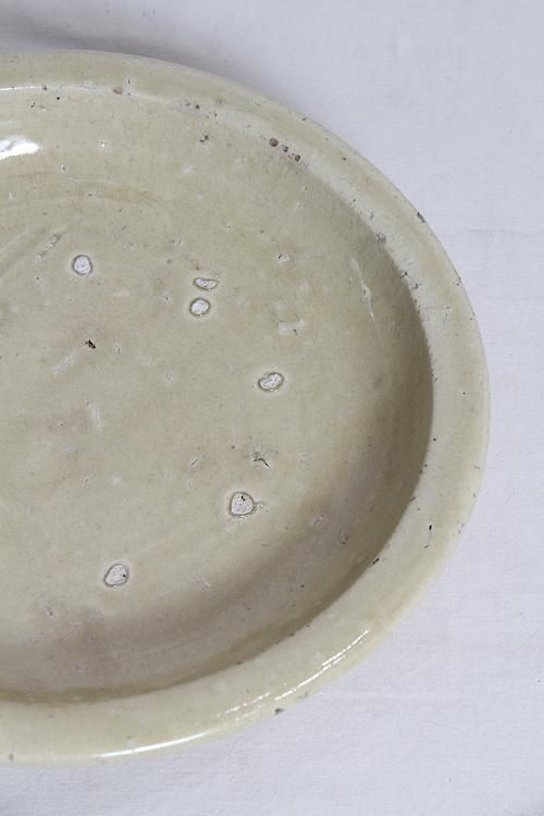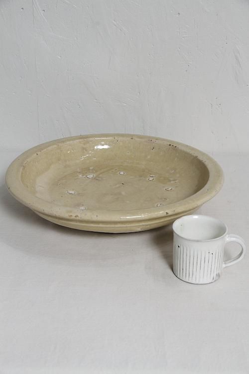 日常使いの器としては、少し躊躇してしまうほどの大きさと重さですが、黄色の淡く優しい色位の釉薬はどんなシーンにも合わせやすく、重宝する一枚になると思います。